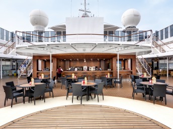 Vonkajšia s balkónom: 15-16m², kajuta s manželskou posteľou (na požiadanie 2 oddelené postele) a rozkladacia pohovka. Klimatizácia, kúpeľňa so sprchou, toaletný stolík, priestorná skriňa, interaktívna TV, telefón, minibar, sejf, sušič na vlasy. Balkón. Internetové pripojenie (za poplatok).