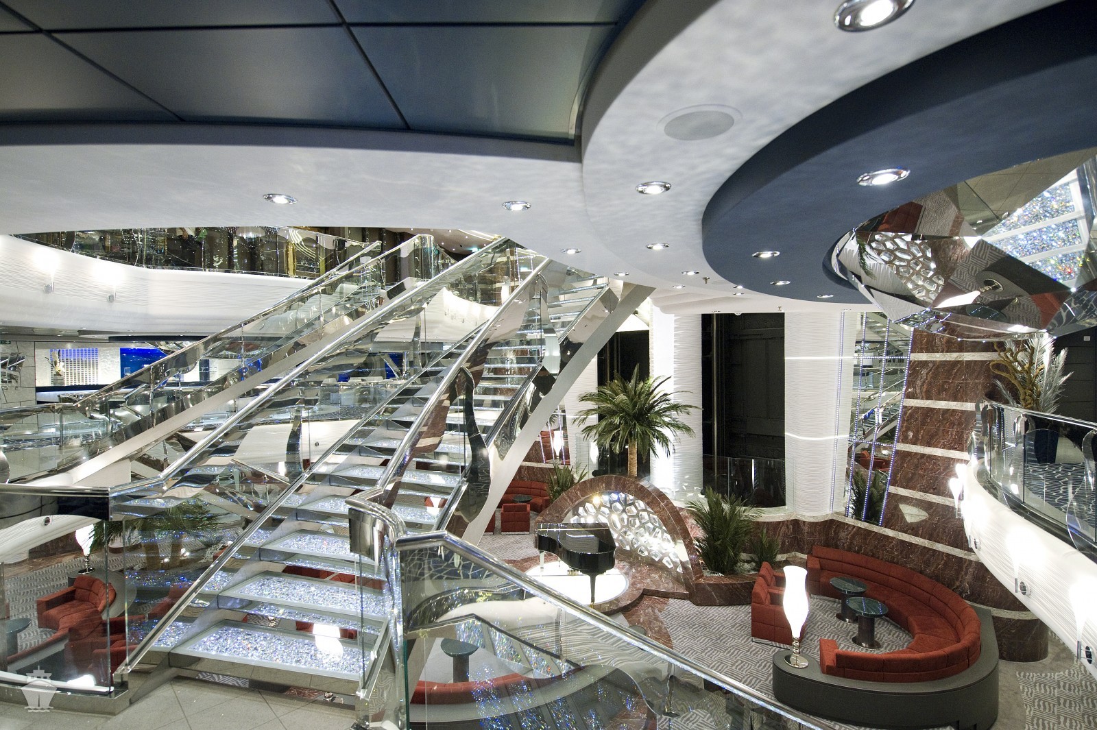 • Trojposchodový Yacht Club so 78 suitami, 15 vnútornými kajutami a 2 obrovskými apartmánmi, každý s veľkou obývacou miestnosťou a dvomi balkónmi, na ktorých nájdete veľký jedálenský stôl, ako aj súkromnú vírivku. K Yacht Club patrí aj vlastná paluba na opaľovanie, bazén, salón a reštaurácie.