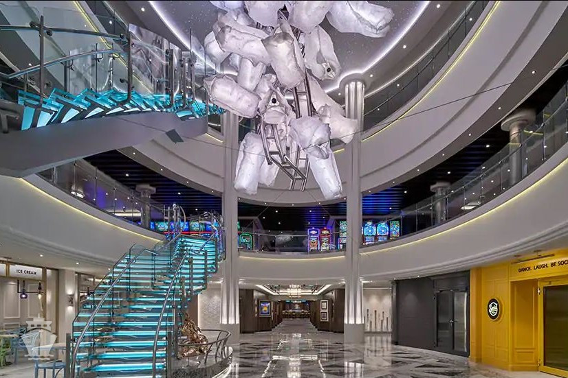 Ocean Loops - tobogan s dvojitou vývrtkou, vychádzajúci 3 m zboku lode, vo výške 48 m nad oceánom.