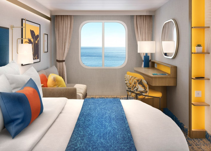 L5 - Kajuta s oknom Panoramic Ocean View 24 m². Celoplošné neotvárateľné okno, výhľad na more. 14. paluba vpredu. Max 3 osoby. 5 096 € 1 274 € za osobu