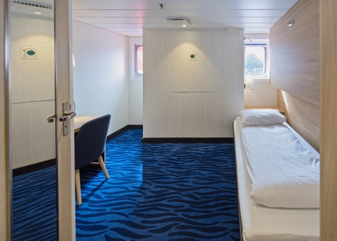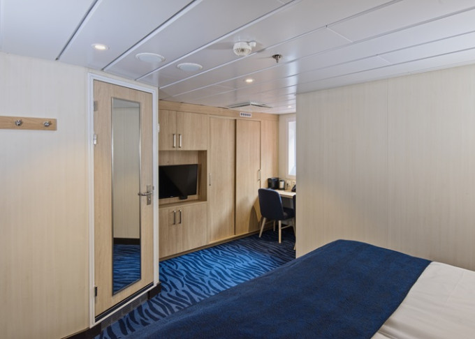 AJ - Vonkajšia kajuta Polar / obmedzený výhľad 8-9 m². Neotvárateľné okno s obmedzeným výhľadom. Spodné a horné lôžko.Tv, sejf, varná kanvica. Max 2 osoby. | 14 718 € 7 359 € za osobu |