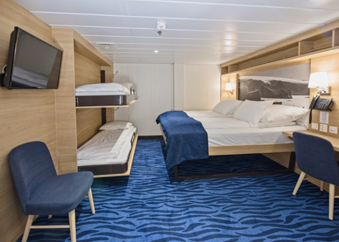 Q3 - Expedition Mini Suite 16-17 m². Neotvárateľné okno. TV, sejf, minibar, kávovar, varná kanvica. 4. paluba. Max 3 osoby. Výhody Suite. | 19 996 € 9 998 € za osobu |