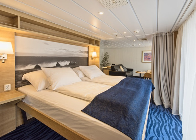 Q2 - Expedition Mini Suite 16-17 m². Neotvárateľné okno. TV, sejf, minibar, kávovar, varná kanvica. 4. paluba. Max 2 osoby. Výhody Suite. | 21 528 € 10 764 € za osobu |