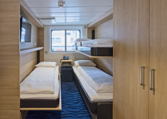 A2 - Vonkajšia kajuta Polar 9-13 m². Neotvárateľné obló. Spodné a horné lôžko, Tv, sejf, varná kanvica. . Max 2 osoby. | 15 850 € 7 925 € za osobu |