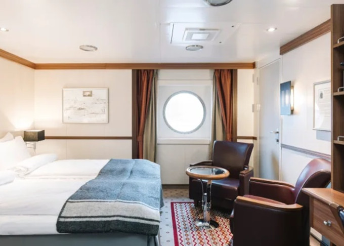 F4 - Vonkajšia kajuta Arctic Superior 22-23 m². Neotvárateľné okno / môže byť obmedzený výhľad.Tv, varná kanvica. Upper paluba. Max 4 osoby. 40 982 € 20 491 € za osobu