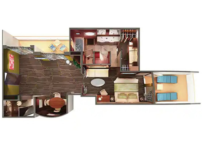 | S6 - Deluxe Owners Suite 61-68 m². Celoplošné neotvárateľné okná.12. paluba - vpredu. Max 6 osôb. Výhody Suite. | 10 462 € 5 231 € za osobu |