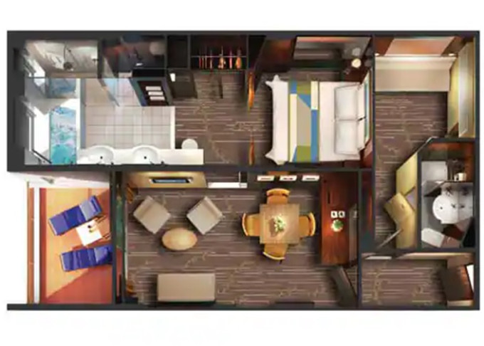 | S4 - Deluxe Family Suite 53 m² / balkón 7 m². 11. paluba - vpredu, stred. Max 6 osôb. Výhody Suite. | 10 216 € 5 108 € za osobu |