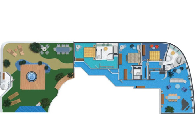 | S1 - Garden Villa - 3 spálne 621 m² / balkón 414 m². Vírivka. 14. paluba - stred. Max 7 osôb. Výhody Suite. | 34 734 € 17 367 € za osobu |