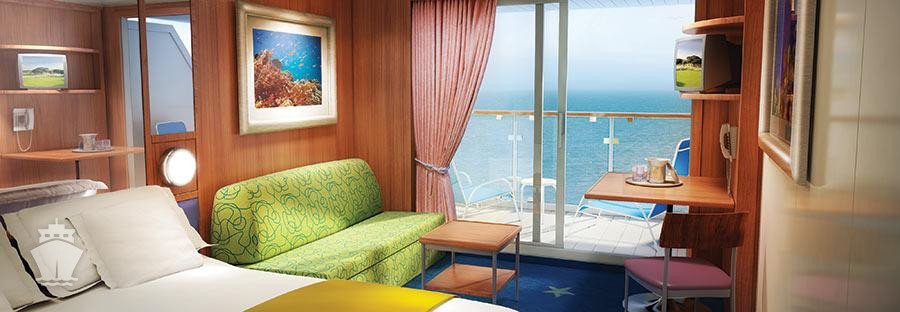 | B1 - Kajuta s balkónom Aft-facing 18-24 m² / balkón 3-8 m². 8. až 10. paluba - vzadu. Max 3 osoby. | 7 798 € 3 899 € za osobu |