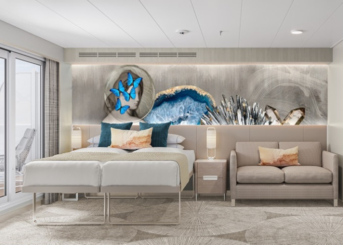 | SH - Suite s veľkým balkónom Aft-Facing 58 m² / balkón 34 m². 9. paluba - vzadu. Max 4 osoby. Výhody Suite. | 5 744 € 2 872 € za osobu |