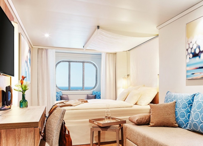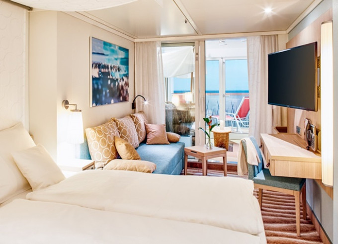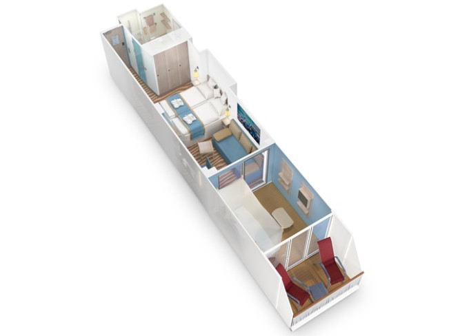 DA - Kajuta s verandou Deluxe PREMIUM21 m² + balkón 11 m². 9. až 14. paluba. Max 3 osoby. Cenový model Premium.