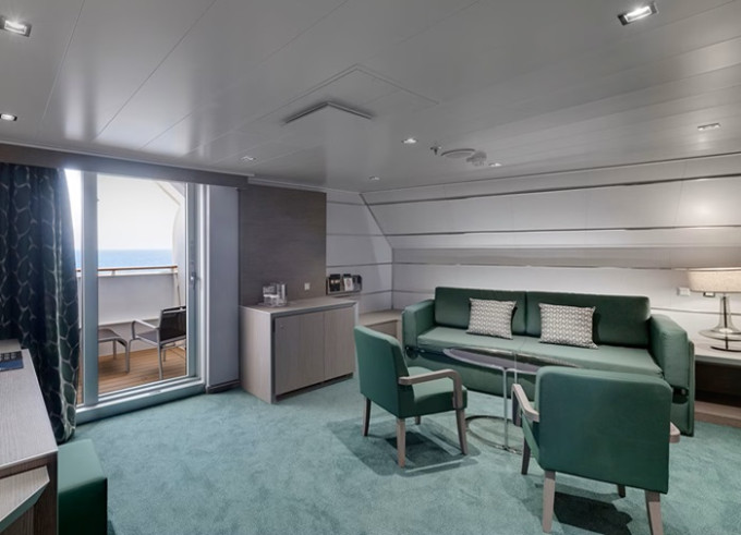 Balkónová kajuta: 16 -17 m², kajuta s manželskou posteľou (na požiadanie 2 oddelené postele) a rozkladacia pohovka. Klimatizácia, kúpeľňa so sprchou alebo vaňou a WC, toaletný stolík, priestranná skriňa, interaktívna TV, telefón, trezor, sušič vlasov, virtuálna asistentka ZOE. Balkóny so stolíkom a stoličkami. Niektoré kajuty majú obmedzený výhľad.