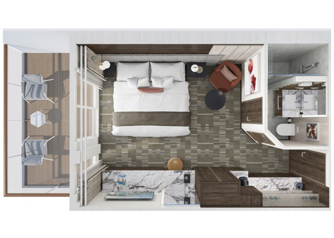 | H2 - The Haven Deluxe Owner's Suite 79 m² / balkón 11 m². 16,17. paluba - vpredu, stred. Max 4 osoby. Výhody The Haven. | 12 380 € 6 190 € za osobu |
