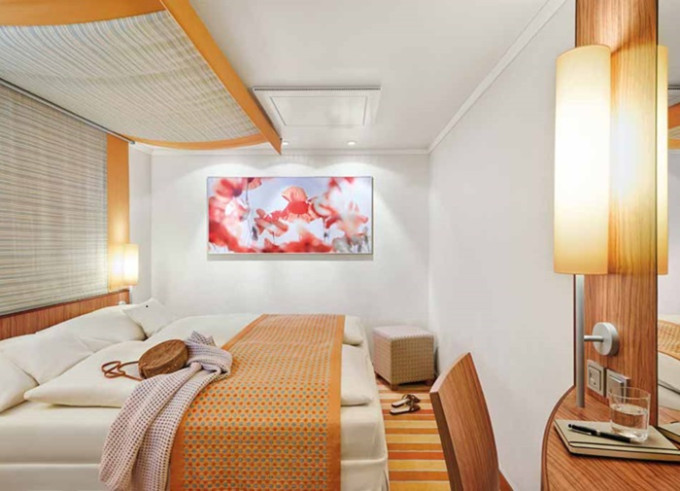 | CA - Vonkajšia kajuta PREMIUM / obmedzený výhľad 14-16,5 m². Neotvárateľné okno / obmedzený výhľad. 6. paluba. Max 2 osoby. Cenový model Premium. | 3 240 € 1 620 € za osobu | ||