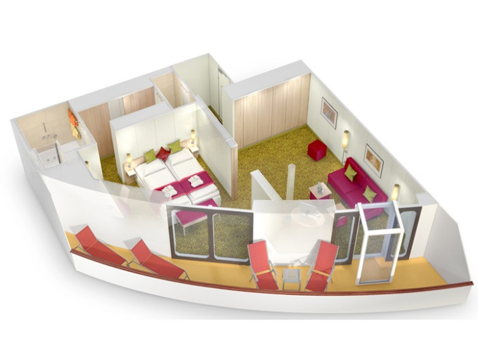 | SB - Suite PREMIUM od 49 m² (vrátane balkóna od 16 m²). 7. paluba. Max 4 osoby. Cenový model Premium + výhody Suite. | 6 540 € 3 270 € za osobu |