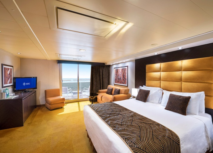 YC1 - Yacht Club Deluxe Suite 23-29 m² + balkón 4-6 m². 15-16. paluba. Cenový model MSC Yacht Club. | 6 236 € 1 559 € za osobu |