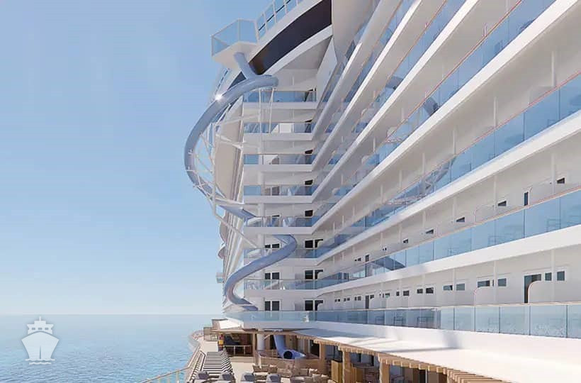 Prvá šmykľavka s voľným pádom na mori. Špirálovou cestou sa dostanete zhora nadol cez desať poschodí.