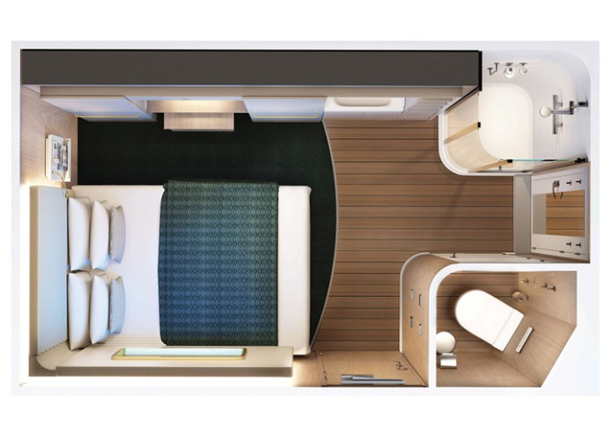 | T1 - Vnútorná kajuta Studio Single 9 m². Max 1 osoba. 10,11,12. paluba - stred. | 1 440 € 720 € za osobu |