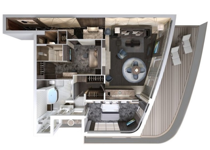 | H2 - The Haven Deluxe Owner's Suite 136 m² / balkón 45 m².18. paluba - vpredu. Max 6 osôb. Výhody The Haven. | 16 826 € 8 413 € za osobu |