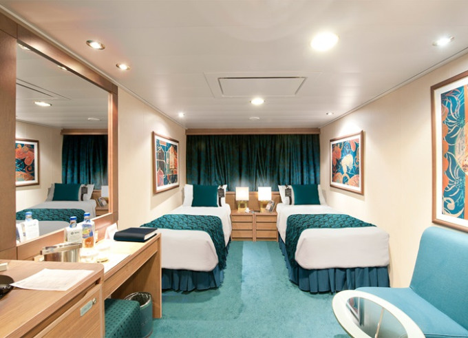 Vnútorná: 13-20m², kajuta s manželskou posteľou (na požiadanie 2 oddelené postele) a 1-2 vyklápacie horné lôžka. Klimatizácia, kúpeľňa so sprchou, toaletný stolík, skriňa, interaktívna TV, minibar, sejf, telefón, sušič na vlasy. Internetové pripojenie (za poplatok).