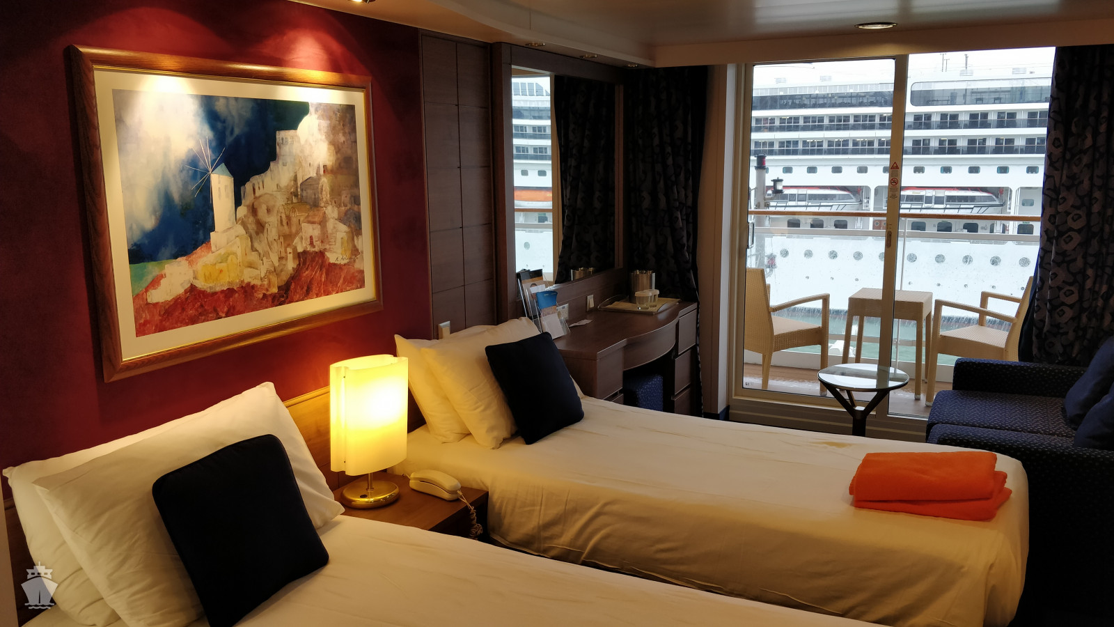 - Ubytovanie v plne vybavenej kajute: vlastná kúpeľňa so sprchou a WC, interaktívna TV, telefón, safe, sušič na vlasy, regulovateľná klimatizácia, minibar (za poplatok). Pripojenie na internet cez Wi-fi (za poplatok)