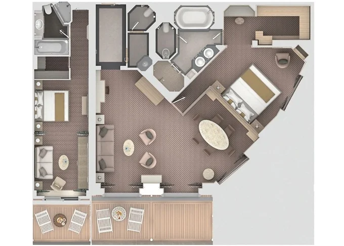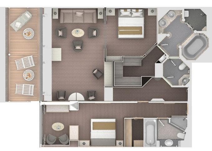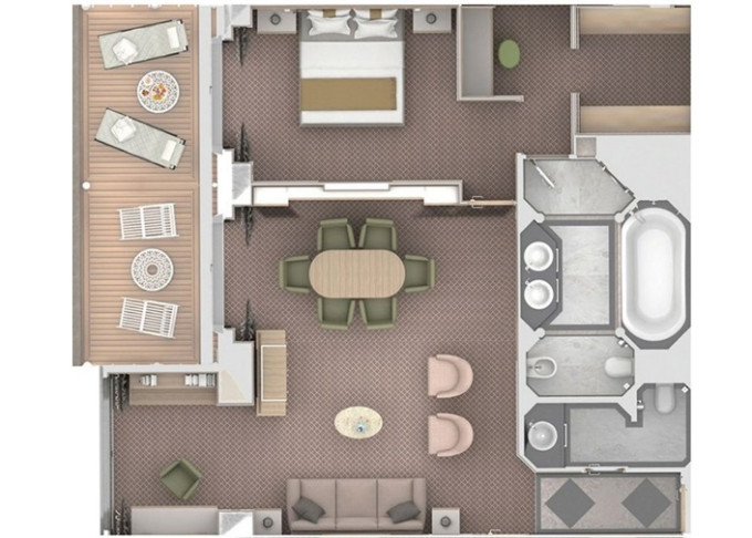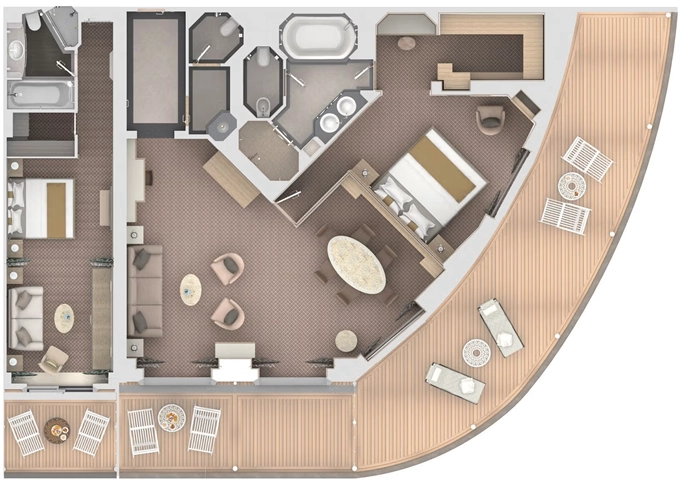 | R1 - Royal Suite 1 105 m² (vrátane balkónu). 7. paluba vpredu. Max 3 osoby. | 36 000 € 36 000 € za osobu | ||