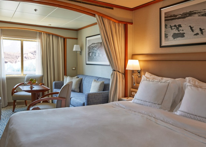 | VI - Vista Suite s oknom 32 m². Panoramatické neotvárateľné okno. 4. paluba. Max 2 osoby. | 11 700 € 11 700 € za osobu | ||