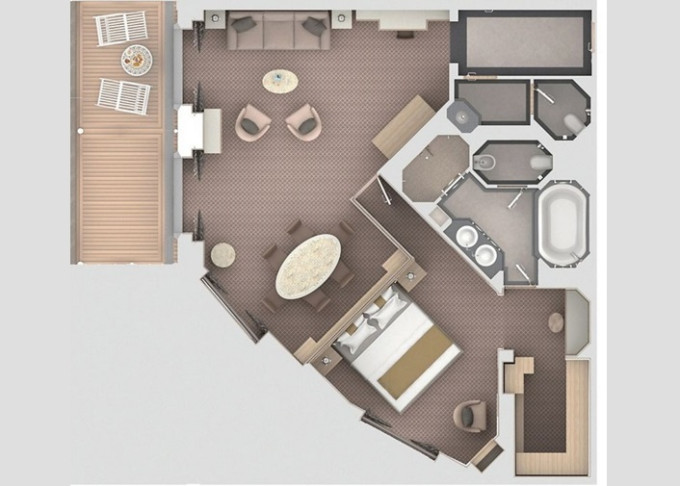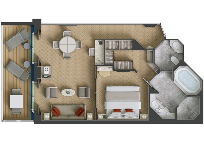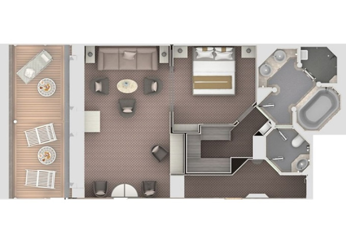| SV - Superior Veranda Suite 30 m² + balkón 6 m². 7,8,9. paluba. Max 3 osoby. | 14 100 € 14 100 € za osobu | Vypredané | |