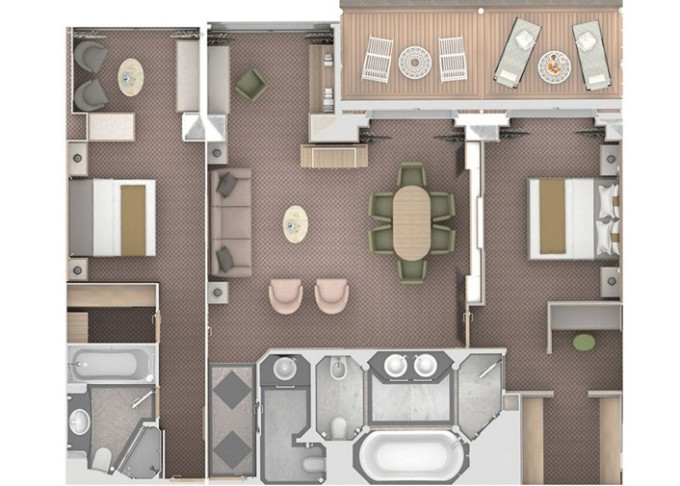 | G2 - Grand Suite 2 137 m² (vrátane balkónov 44 m²). Grand Suite G1 spojená s Veranda Suite. 8,9. paluba vpredu. Max 5 osôb. | 79 600 € 79 600 € za osobu | Vypredané | |