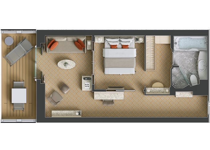| DX - Deluxe Veranda Suite 30 m² + balkón 6 m². 6,7,8. paluba - stred. Max 3 osoby. | 13 650 € 13 650 € za osobu | ||