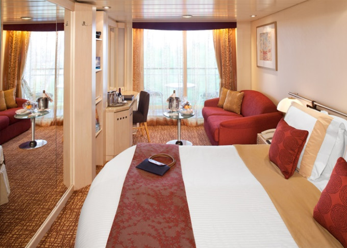 CS - Celebrity Suite 44 m² + balkón 8 m². Kúpeľňa s vírivkou. 6. až 9. paluba. Max 3 osoby. Výhody Suite The Retreat. 13 872 € 6 936 € za osobu