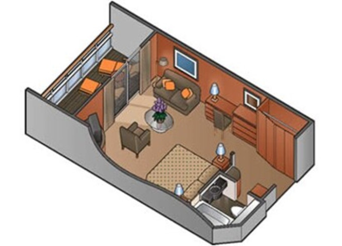 C2 - Kajuta s balkónom Concierge Class 18 m² + balkón 4 m². 8. paluba. Max 3 osoby. Výhody Concierge Class. 4 030 € 2 015 € za osobu