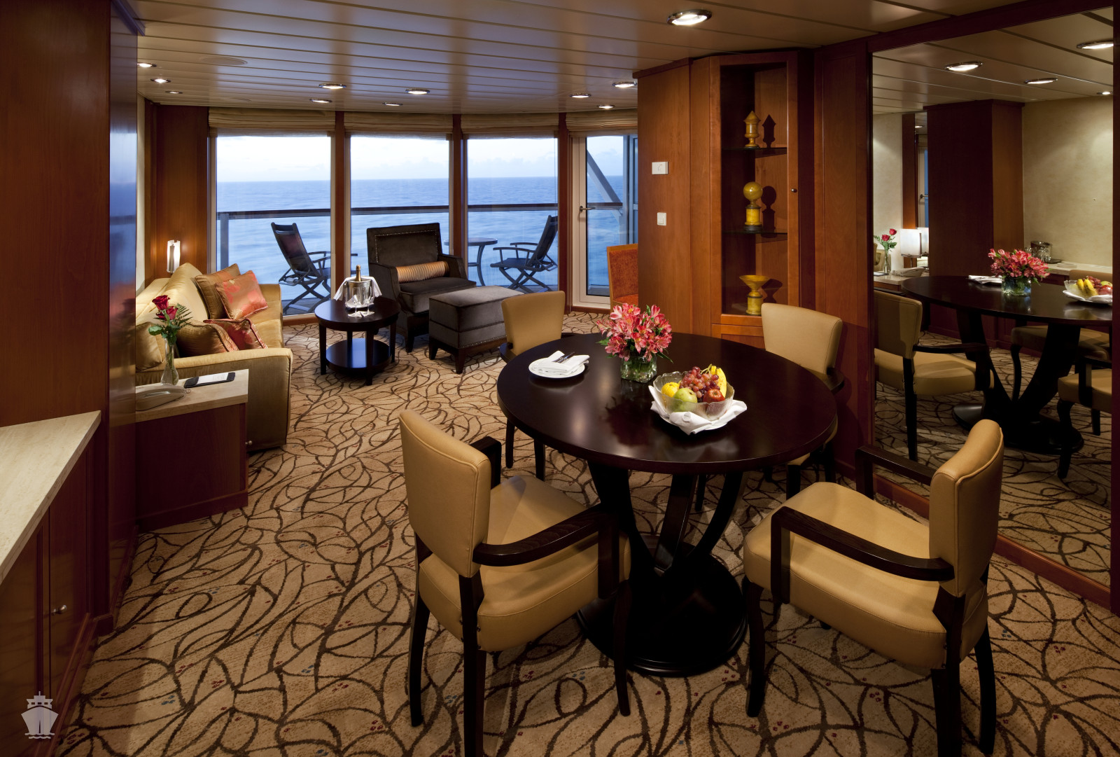CS - Celebrity Suite 44 m² + balkón 8 m². Kúpeľňa s vírivkou. 6. až 9. paluba. Max 3 osoby. Výhody Suite The Retreat. 13 605 € 13 605 € za osobu