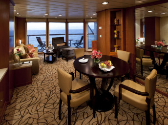 CS - Celebrity Suite 44 m² + balkón 8 m². Kúpeľňa s vírivkou. 6. až 9. paluba. Max 3 osoby. Výhody Suite The Retreat. 20 528 € 5 132 € za osobu