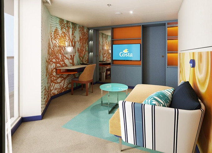T2 My Cruise - Kajuta s balkónom Terrace 19 m² / lounge + balkón 8 m². 9. paluba stred. Max 2-4 osoby. Cenový model MyCruise. | 598 € 299 € za osobu | ||