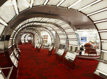 Novinka! Pri vstupe do hlavných reštarácií sú senzory, ktoré v čase obeda monitorujú počet hostí a aktuálna obsadenosť reštaurácií je premietaná na lodných touchpoint obrazovkách.