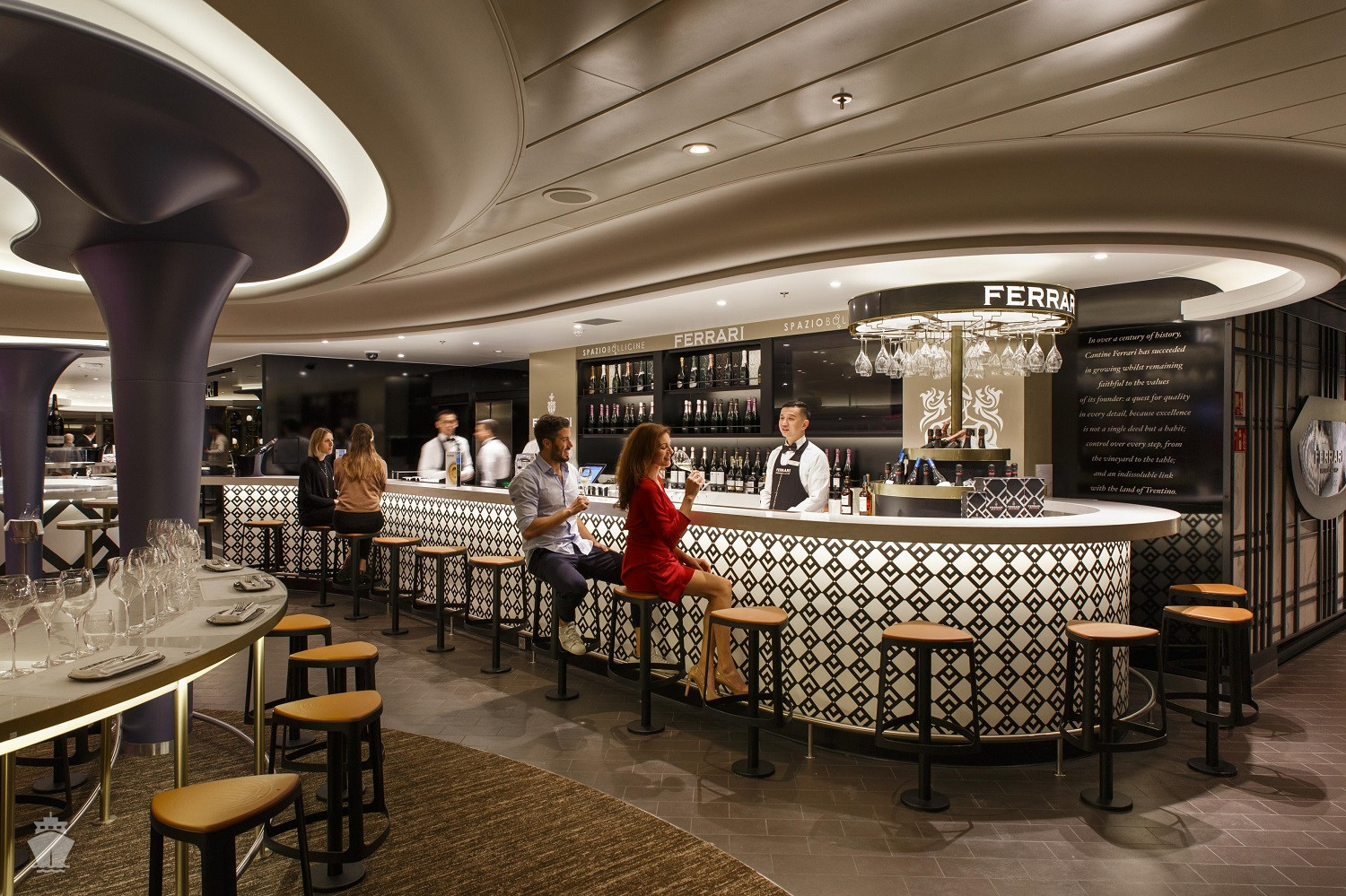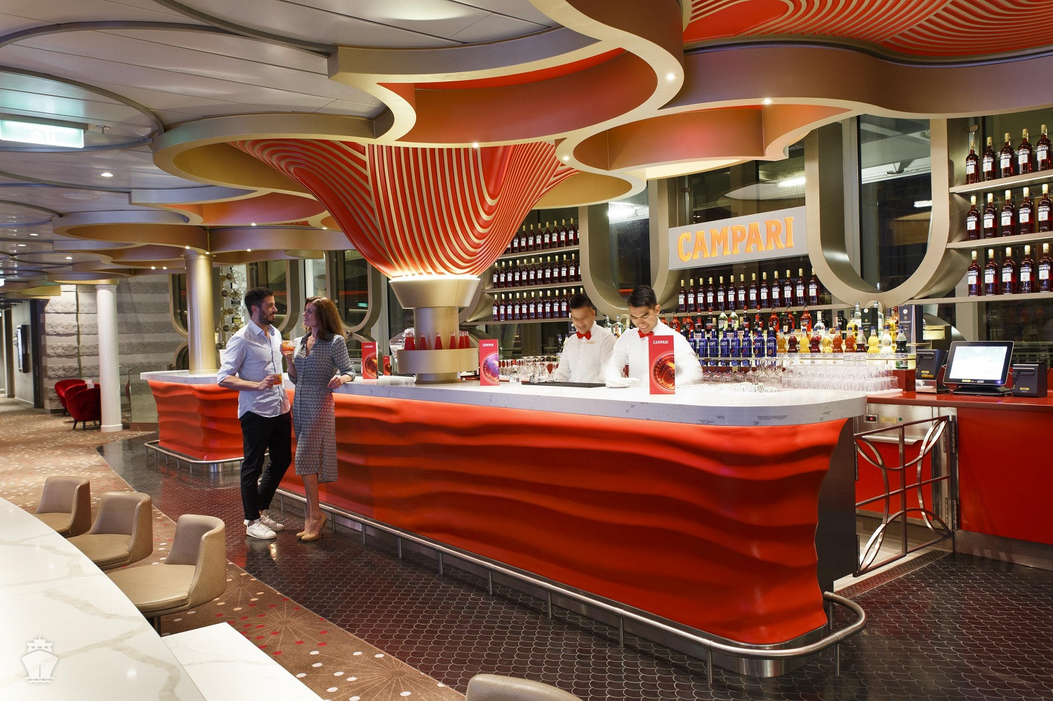 Terrazza Superba Bar na 7. palube na korme, benátsky Bacaro Bar, Bar Spazio Bollicine, Campari Spritz Bar, obľúbená zmrzlináreň - čokoládovňa Gellateria Amarillo.